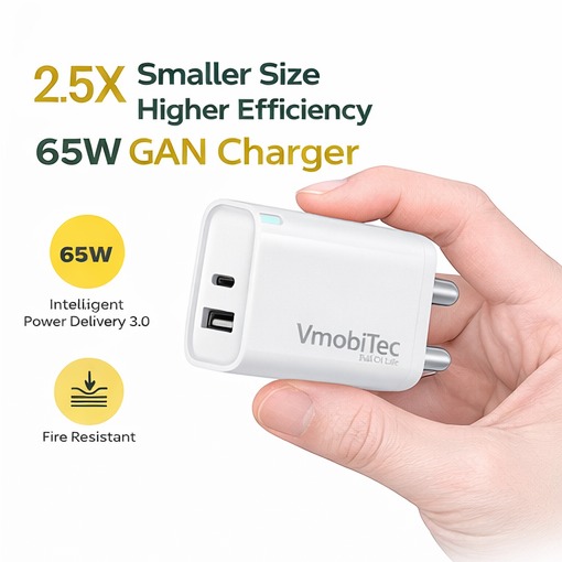 65W Fast Charging, GaN Technology, PD 3.0, QC 3.0, Dual Port (USB-C + USB-A), Smart Chip Thermal Protection, Fire Resistant, Universal Compatibility Supported