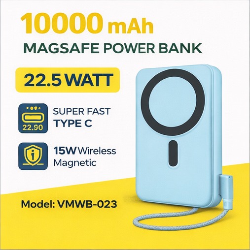 Power Bank VMWB-023 10000mAh MagSafe Power Bank – 22.5W Fast Charging with 15W Wireless Magnetic Support