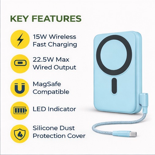 - Built-in Type-C Cable – Easy and portable charging solution