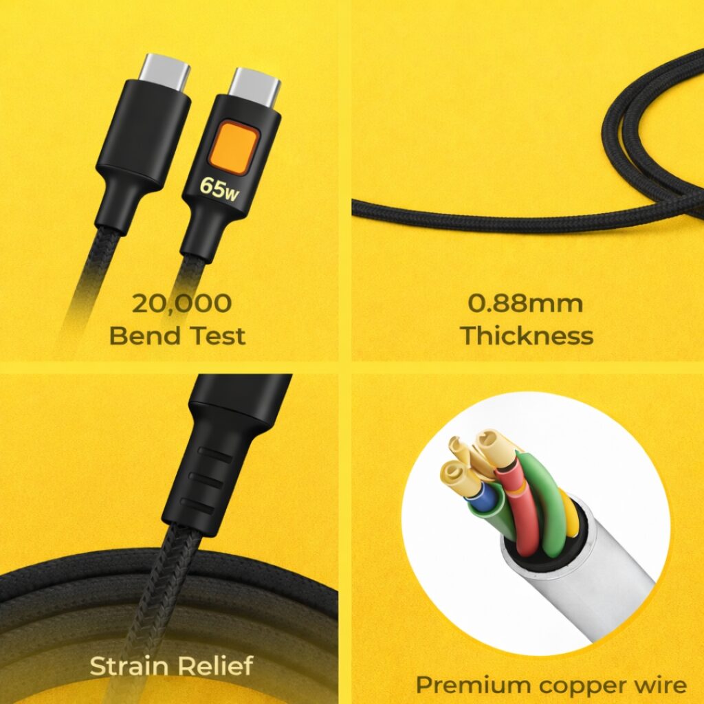 Supports upto 25W charging/ 3A, 1 Meter cable length, Nylon braided, 10000+ Bends lifespan, Tangle free, High Speed 480mbps Data Transfer, Compatible with all brands like Samsung, Iphone Type C, Oneplus, Realme, Oppo, Vivo
